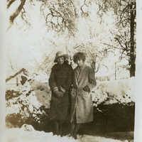 - A photograph of two female Pacific University students on campus after a recent snowfall. This photograph appears in an album that was compiled by Edith Hansen McGill, a 1930 Pacific University graduate.
