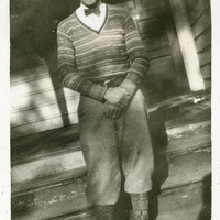 - A photograph of a male Pacific University student dressed in knickerbockers and a bowtie. This photograph appears in an album that was compiled by Edith Hansen McGill, a 1930 Pacific University graduate.