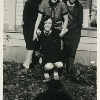 - A photograph of four female Pacific University students posing next to a house. This photograph appears in an album that was compiled by Edith Hansen McGill, a 1930 Pacific University graduate.