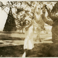 - A photograph of two Pacific University students holding an article of clothing in the air between them. This photograph appears in an album that was compiled by Edith Hansen McGill, a 1930 Pacific University graduate.
