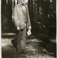 A photograph of a man wearing a sombrero at a campout. It is probably an Epworth League camping trip. The Epworth League was founded by Methodists in 1889 for young adults ages 18-35. Activities often included camping. There were several campgrounds in Oregon and Washington for different chapters of the Epworth League to enjoy. This photograph appears in an album that was compiled by Edith Hansen McGill, a 1930 Pacific University graduate.
