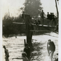 - A photograph of a crowd of people swimming in an unidentified body of water. This photograph appears in an album that was compiled by Edith Hansen McGill, a 1930 Pacific University graduate.