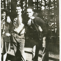 A group of Pacific University students posing at a campsite. This was probably taken during an Epworth League camping trip. The Epworth League was founded by Methodists in 1889 for young adults ages 18-35. Activities often included camping. There were several campgrounds in Oregon and Washington for different chapters of the Epworth League to enjoy. This photograph appears in an album that was compiled by Edith Hansen McGill, a 1930 Pacific University graduate.
