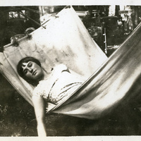 A photograph of a female Pacific University student laying on a hammock while camping. This was most likely taken during an Epworth League camping trip. The Epworth League was founded by Methodists in 1889 for young adults ages 18-35. Activities often included camping. There were several campgrounds in Oregon and Washington for different chapters of the Epworth League to enjoy. This photograph appears in an album that was compiled by Edith Hansen McGill, a 1930 Pacific University graduate.