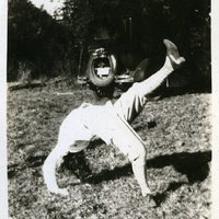 - A photograph of a female Pacific University student doing a backbend. This photograph appears in an album that was compiled by Edith Hansen McGill, a 1930 Pacific University graduate.