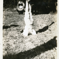 A photograph of a Pacific University student performing a handstand. This was most likely taken during a camping trip with the Epworth League. The Epworth League was founded by Methodists in 1889 for young adults ages 18-35. Activities often included camping. There were several campgrounds in Oregon and Washington for different chapters of the Epworth League to enjoy. This photograph appears in an album that was compiled by Edith Hansen McGill, a 1930 Pacific University graduate.