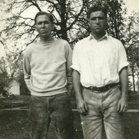 - A photograph of Pacific University student, Edwin Ingles, with a fellow student. This photograph appears in an album that was compiled by Edith Hansen McGill, a 1930 Pacific University graduate.