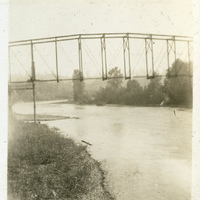 - A photograph of a bridge in the middle of being constructed. The bridge is crossing over an unidentified body of water. This photograph appears in an album that was compiled by Edith Hansen McGill, a 1930 Pacific University graduate.