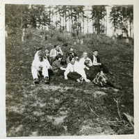- A photograph of a group of Pacific University students sitting on a hill. This photograph appears in an album that was compiled by Edith Hansen McGill, a 1930 Pacific University graduate.