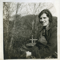 - A photograph of a Pacific University student resting during a hike. This photograph appears in an album that was compiled by Edith Hansen McGill, a 1930 Pacific University graduate.