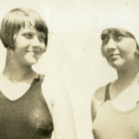 - A photograph of two Pacific University students in their swimsuits. This was most likely during a visit to the Oregon coast. This photograph appears in an album that was compiled by Edith Hansen McGill, a 1930 Pacific University graduate.