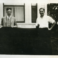 - A photograph of two male Pacific University students holding the senior blanket. The blanket would be stolen in 1929 at a Letterman's Dance. It would be returned in May of 1930. This photograph appears in an album that was compiled by Edith Hansen McGill, a 1930 Pacific University graduate.