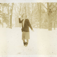 - A photograph of a female Pacific University student standing on campus while it is snowing. This photograph appears in an album that was compiled by Edith Hansen McGill, a 1930 Pacific University graduate.