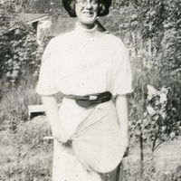 - A photograph of a Pacific University student wearing a long dress and a hat. This photograph appears in an album that was compiled by Edith Hansen McGill, a 1930 Pacific University graduate.