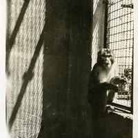 - A photograph of a monkey that appears to be in a caged exhibit. It could possibly be at a zoo. This photograph appears in an album that was compiled by Edith Hansen McGill, a 1930 Pacific University graduate.