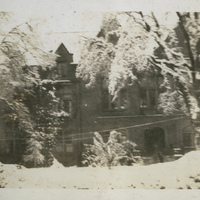 A photograph of Marsh Hall after a recent snowfall. Marsh Hall was built in 1895 and named after Pacific University president, Sidney Harper Marsh. Marsh Hall housed the university's chapel, recitation rooms, classrooms, administration offices and rooms for the literary societies and the Christian Associations. This photograph appears in an album that was compiled by Edith Hansen McGill, a 1930 Pacific University graduate.
