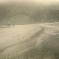- A photograph of an elevated view of the Pacific Ocean at an unidentified beach. This photograph appears in an album that was compiled by Edith Hansen McGill, a 1930 Pacific University graduate.