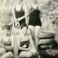 - A photograph of a group of Pacific University students in their swimsuits. The photograph was taken near the Oregon coast. This photograph appears in an album that was compiled by Edith Hansen McGill, a 1930 Pacific University graduate.