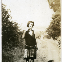 - A photograph of a female Pacific University student standing on a gravel road. This was likely taken near Forest Grove, Oregon. This photograph appears in an album that was compiled by Edith Hansen McGill, a 1930 Pacific University graduate.
