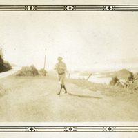 - A photograph of a woman on the side of the road, probably in northwestern Oregon. An unidentified river is on the other side of her. This photograph appears in an album that was compiled by Edith Hansen McGill, a 1930 Pacific University graduate.