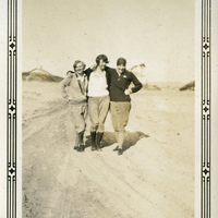 - A photograph of Pacific University student, Edith Hansen McGill, with two fellow students. They are at the beach, likely on the Oregon coast. This photograph appears in an album that was compiled by Edith Hansen McGill, a 1930 Pacific University graduate.