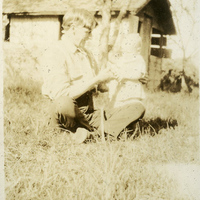 - A photograph of an unidentified man sitting with a child in his lap. This was most likely taken near Forest Grove, Oregon. This photograph appears in an album that was compiled by Edith Hansen McGill, a 1930 Pacific University graduate.