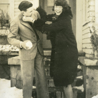 A photograph of Pacific University student, Edith Hansen McGill, and a fellow student dressed up for an evening out. The pair were going to watch the Pacific production of The Patsy. The Patsy was a play put on for the Pacific University homecoming in November, 1928. It was presented as an all class production and used as a fundraiser for stage equipment. It was performed in the Chapel on the evening of November 16th, 1928. This photograph appears in an album that was compiled by Edith Hansen McGill, a 1930 Pacific University graduate.