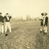 - A photograph of two female Pacific University students point a rifle at three male students. This photograph appears in an album that was compiled by Edith Hansen McGill, a 1930 Pacific University graduate