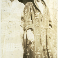 - A photograph of two male Pacific University students wearing bathrobes. The pair are standing outside of the Gamma Sigma house. The Gamma Sigma were an organized fraternity beginning in 1924. This photograph appears in an album that was compiled by Edith Hansen McGill, a 1930 Pacific University graduate