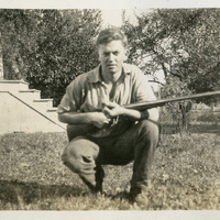 - A photograph of a male Pacific University student holding a gun. He is outside the Gamma Sigma fraternity house. The Gamma Sigma were an organized fraternity beginning in 1924. This photograph appears in an album that was compiled by Edith Hansen McGill, a 1930 Pacific University graduate