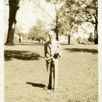 - A photograph of a Pacific University professor standing on the campus lawn. This photograph appears in an album that was compiled by Edith Hansen McGill, a 1930 Pacific University graduate.
