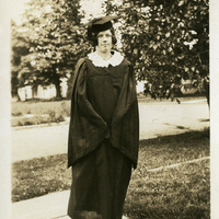 - A photograph of Pacific University student, Edith Hansen McGill, in her cap and gown. This photograph appears in an album that was compiled by her, a 1930 Pacific University graduate.