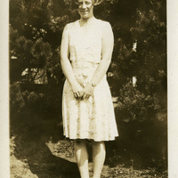 - A photograph of Pacific University student, Edith Hansen McGill, posing in front of a tree. This photograph appears in an album that was compiled by Edith Hansen McGill, a 1930 Pacific University graduate.