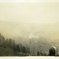 - A photograph of a forested landscape that has been cleared in large areas. This photograph appears in an album that was compiled by Edith Hansen McGill, a 1930 Pacific University graduate.