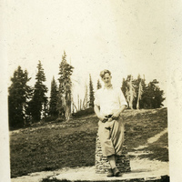 - A photograph of a male Pacific University student leaning against a brick structure. This photograph appears in an album that was compiled by Edith Hansen McGill, a 1930 Pacific University graduate.