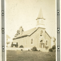 - A photograph of an unidentified church building. This photograph appears in an album that was compiled by Edith Hansen McGill, a 1930 Pacific University graduate.