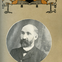 A scrapbook page titled The Faculty. The page contains a photograph of Pacific University's President, William Ferrin. Ferrin was the university's president from 1900-1913. This photograph appears in a scrapbook album compiled by Frances B. Clapp, a 1908 Pacific University graduate.