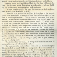 A flier that asks what is Pacific University's greatest need. After listing several options such as a gymnasium or girl's dormitory, the flier suggests that what the university really needs is college spirit. This flier appears in a scrapbook album compiled by Frances B. Clapp, a 1908 Pacific University graduate.