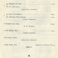 - Choral Union and Glee Club Concert Program, Frances B. Clapp Scrapbook (1905-1909), 49, Pacific University Archives, Forest Grove, Oregon.