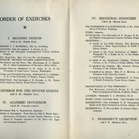 Pacific University President Inauguration Program, Frances B. Clapp Scrapbook (1914), 65, Pacific University Archives, Forest Grove, Oregon.