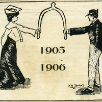 A newspaper clipping from the Pacific University newspaper, the Index. The image appeared in the December 19th, 1905 edition of the newspaper, with the heading 'Best Wishes for a Merry Christmas, Wishing You A Happy New Year'. The newspaper clipping appears in a scrapbook compiled by Frances B. Clapp, a 1908 Pacific University graduate.