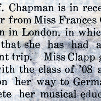 'In Letter to F.T. Chapman Famous Artist Praises Pacific Music Pupils' Newspaper Clipping, Frances B. Clapp Scrapbook (1910), 71, Pacific University Archives, Forest Grove, Oregon.