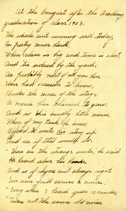 - Tualatin Academy Graduation Poem, Frances B. Clapp Scrapbook (1903), 124-128, Pacific University Archives, Forest Grove, Oregon.