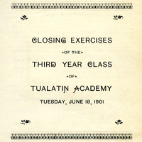 Tualatin Academy Closing Exercises for the 1901 Third Year Class Program, Frances B. Clapp Scrapbook (1901), 129, Pacific University Archives, Forest Grove, Oregon.