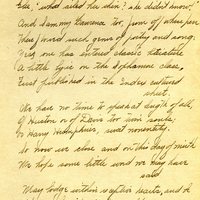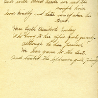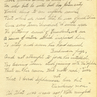 - A handwritten poem on several scrapbook pages. The pages appear in a scrapbook compiled by Frances B. Clapp, a 1908 Pacific University graduate.