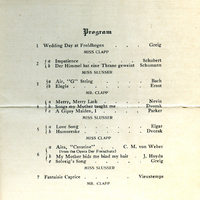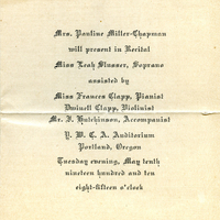 1910 Pacific University Music Recital Program, Frances B. Clapp Scrapbook (1910), 171, Pacific University Archives, Forest Grove, Oregon.