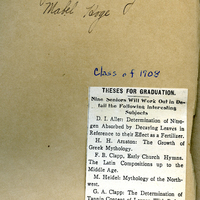 1908 List of Pacific University Senior Thesis, Frances B. Clapp Scrapbook (1908), 193, Pacific University Archives, Forest Grove, Oregon.