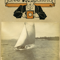A scrapbook page from Frances B. Clapp's scrapbook. The page includes a photograph of a sailboat on an unidentified bod of water. Clapp was a 1908 pacific University graduate.
