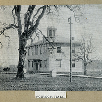A photograph of Pacific University's Science Hall, known now as Old College Hall. This building was built in 1850 and is the oldest building on campus. This photograph appears in a scrapbook compiled by Frances B. Clapp, a 1908 Pacific University graduate.