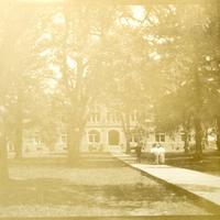 Students Walking on Wood Plank Walkway Leading to Marsh Hall, Frances B. Clapp Scrapbook (1905-1909), 112, Pacific University Archives, Forest Grove, Oregon.